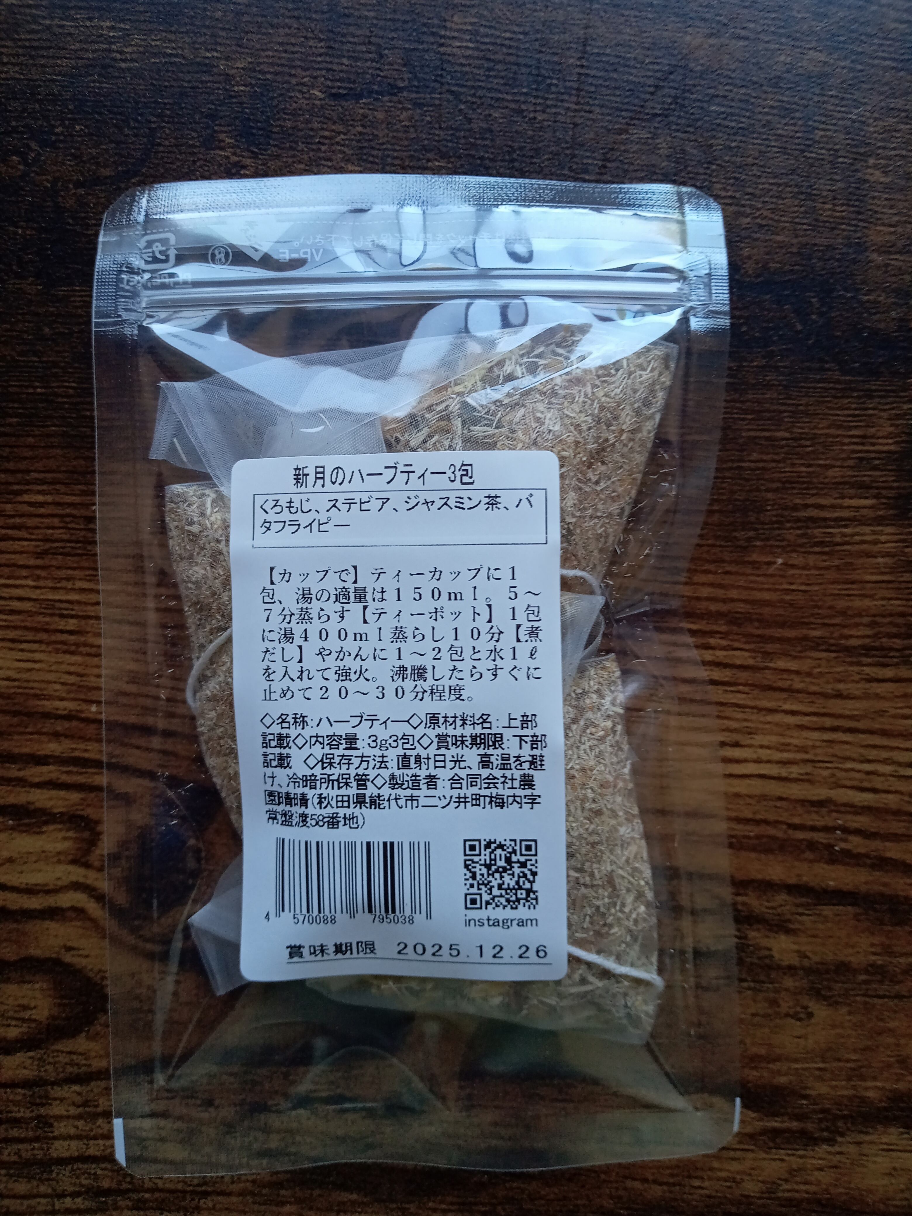 ブレンドの思い:新月のころは、あらゆるものにパワーがチャージされて、新たなサイクルの始まりが意識されます。月光のない神秘の夜に、希望がこんこんと湧いてくるようなイメージで、青いハーブティーをつくりました。2025年夏、さわやかさと奥深さをテーマにした「月シリーズ」の一つ。