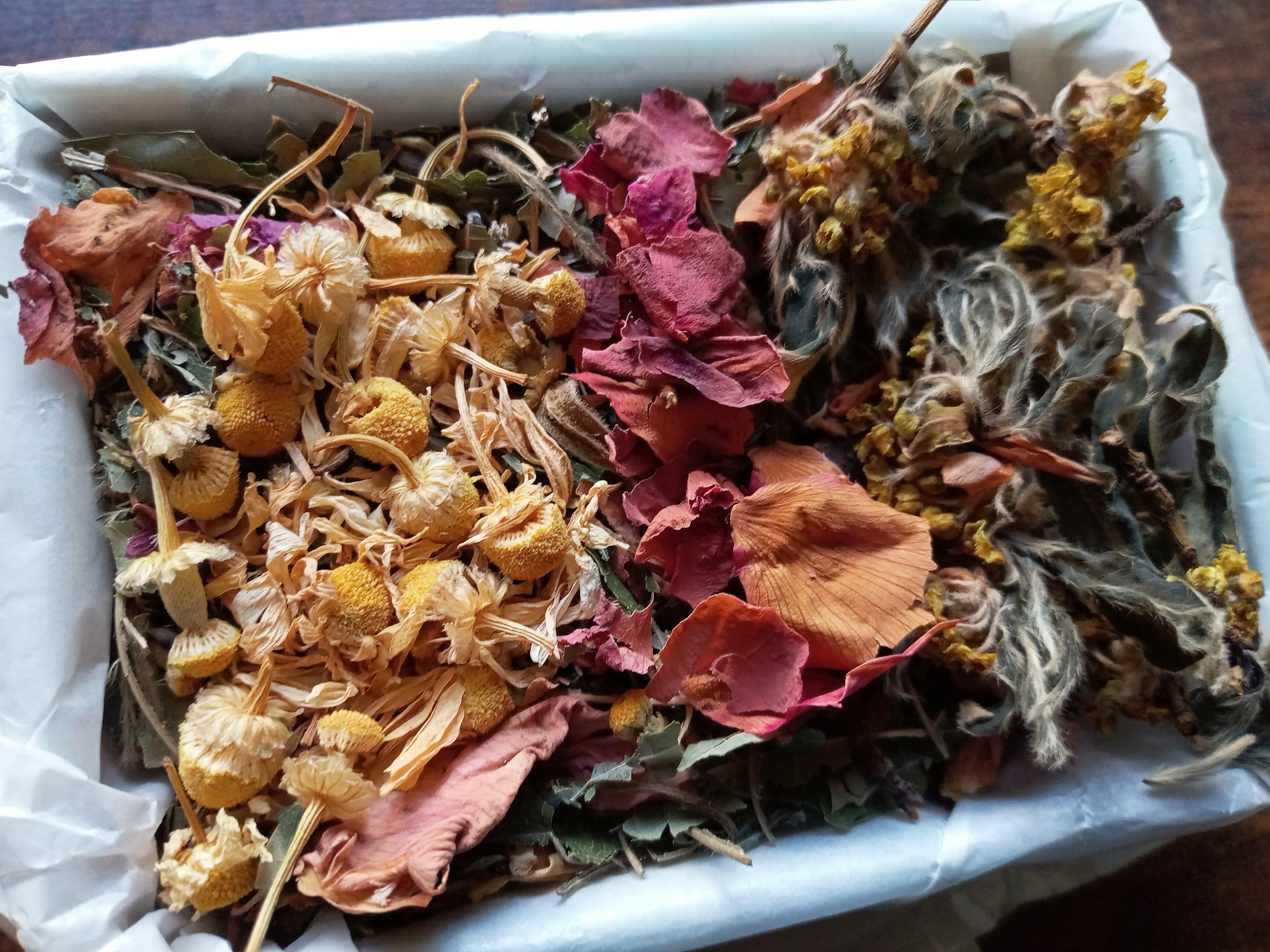 折折茶03を箱に入れて、花の茶葉をデコレーションしました。