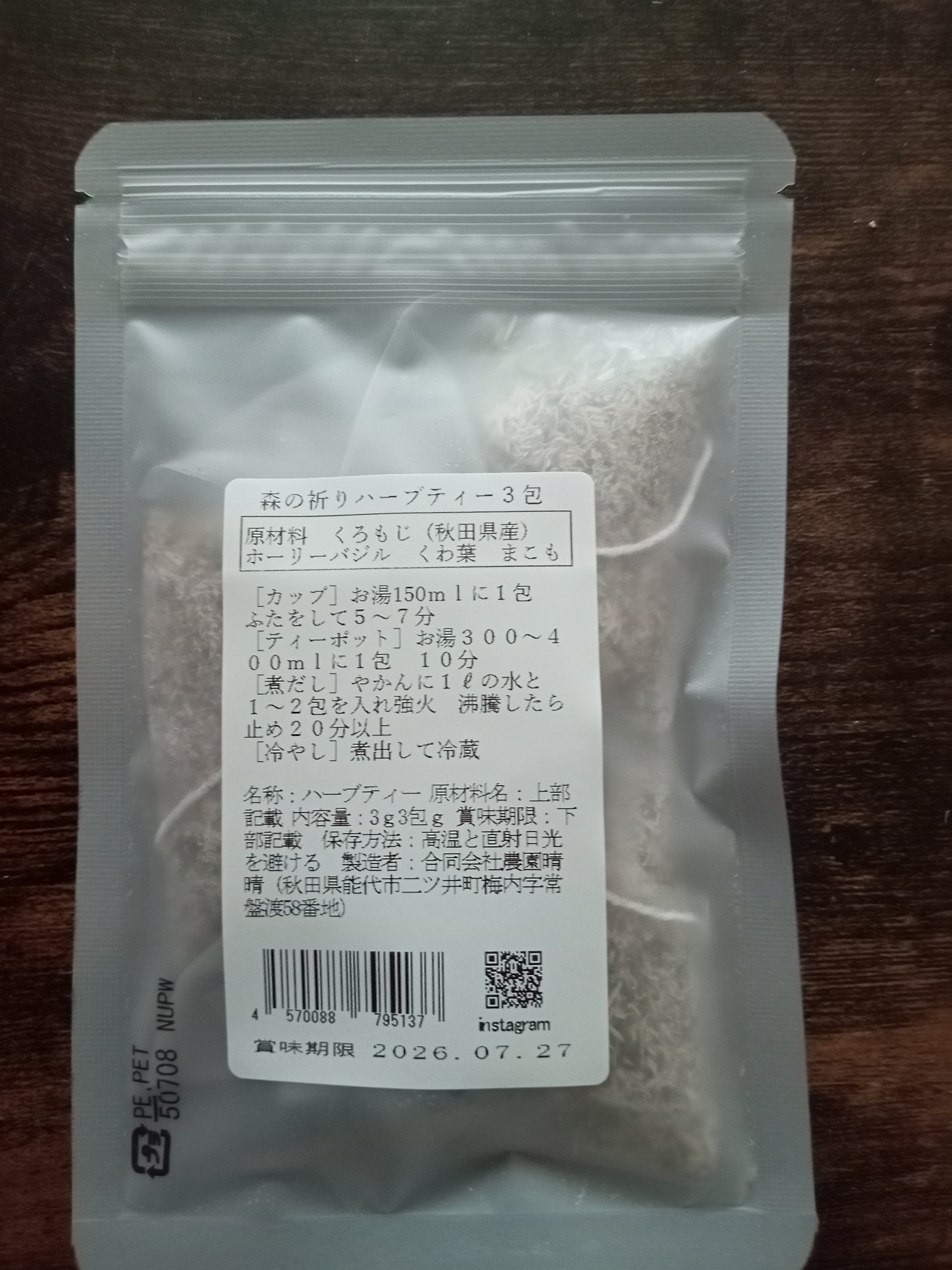 森の香りのハーブティーです。