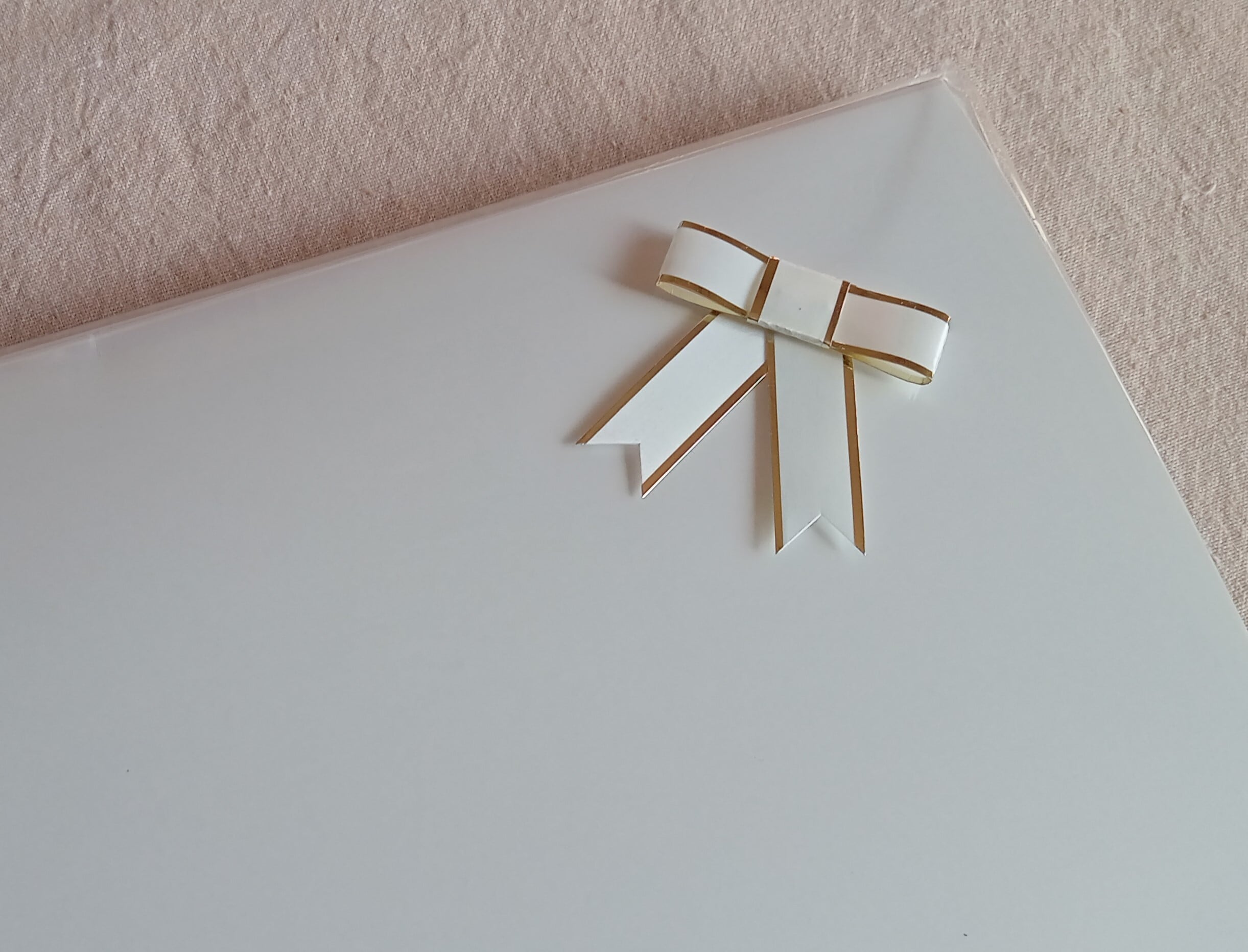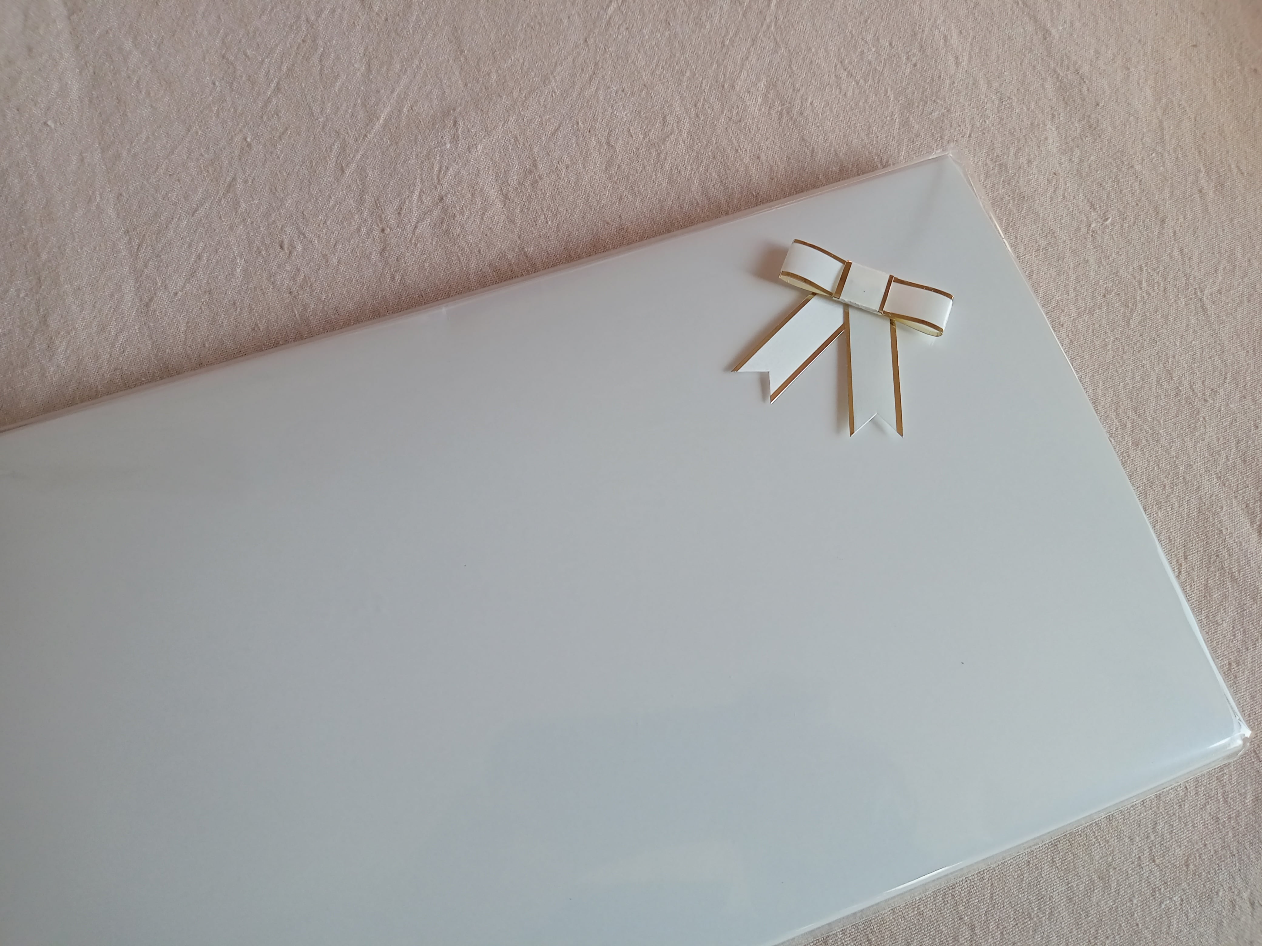 白い箱にお入れし、リボンシールを同梱しています。